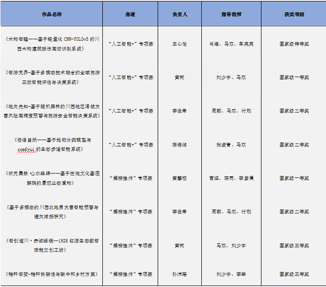 尤为可贵的是,在作为首届赛事便备受瞩目的“人工智能+”专项赛中,规划系实现了金牌零的突破:由肖海、马双、车亮亮老师指导、队长王心怡带领的“木构智瞳”团队荣膺最高荣誉——全国特等奖。此外,黄柯团队再获国家级一等奖,李俊希团队、陈沛润团队分获国家级二等奖。这一成绩在数万支参赛团队中脱颖而出,含金量十足。