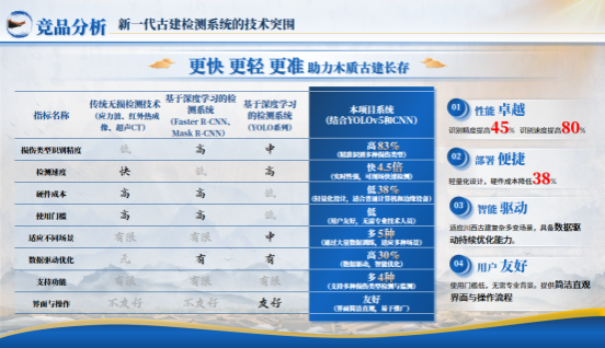 优异成绩的取得,充分印证了规划系在“人工智能+”这一全新赛道上前瞻布局的正确性,以及“规划+AI”跨学科融合创新的巨大潜力。尤其是斩获全国特等奖的“木构智瞳”项目,团队直面川西木构建筑保护难题,将前沿AI技术与规划保护需求深度融合,成功研发出基于轻量化CNN-YOLOv5的高效识别系统。该模型体积通过拍摄即可实现损伤精准识别与评估,为基层文保工作提供了极富应用价值的“规划+AI”解决方案,是规划学子以科技守护文脉的生动实践。